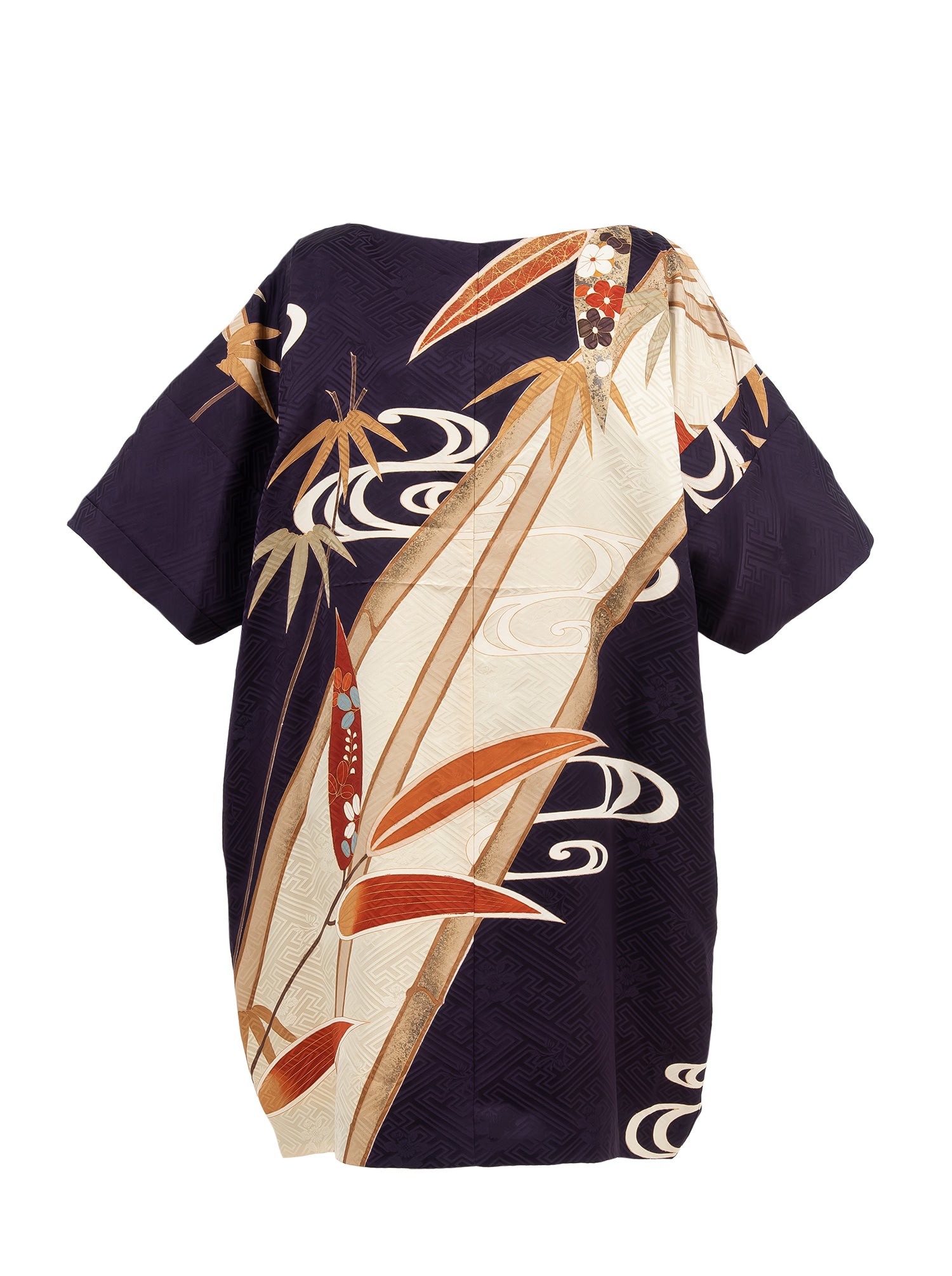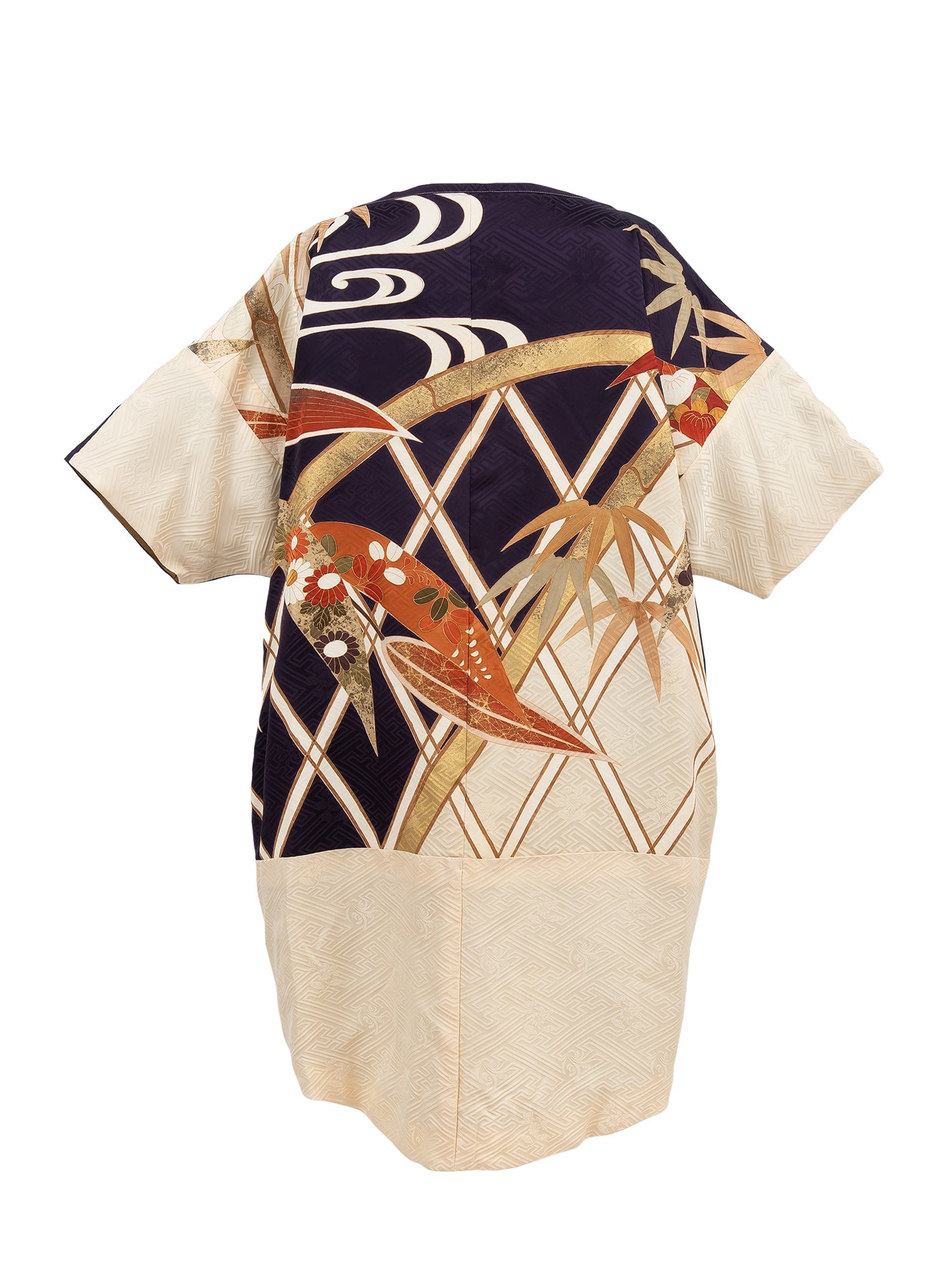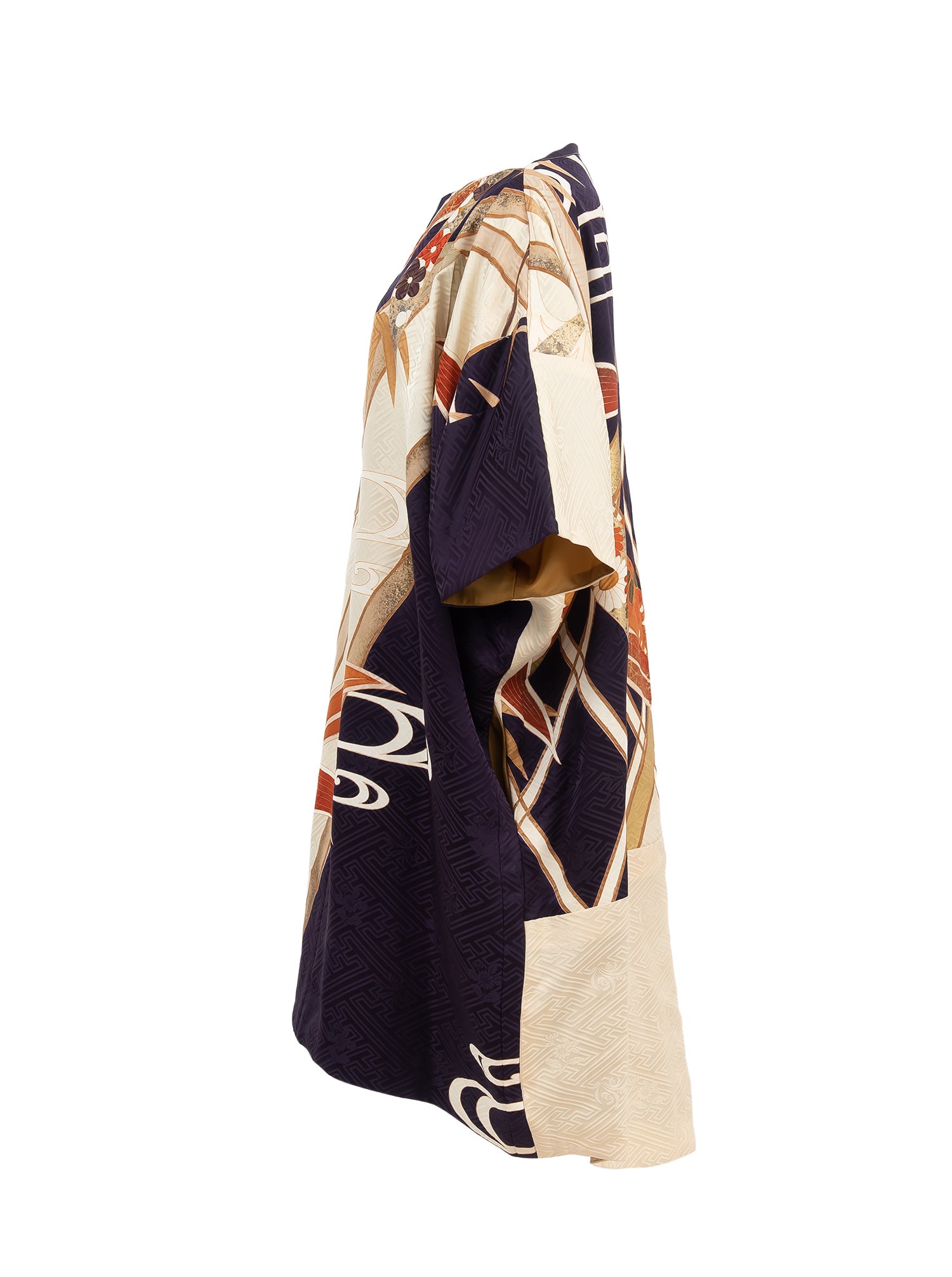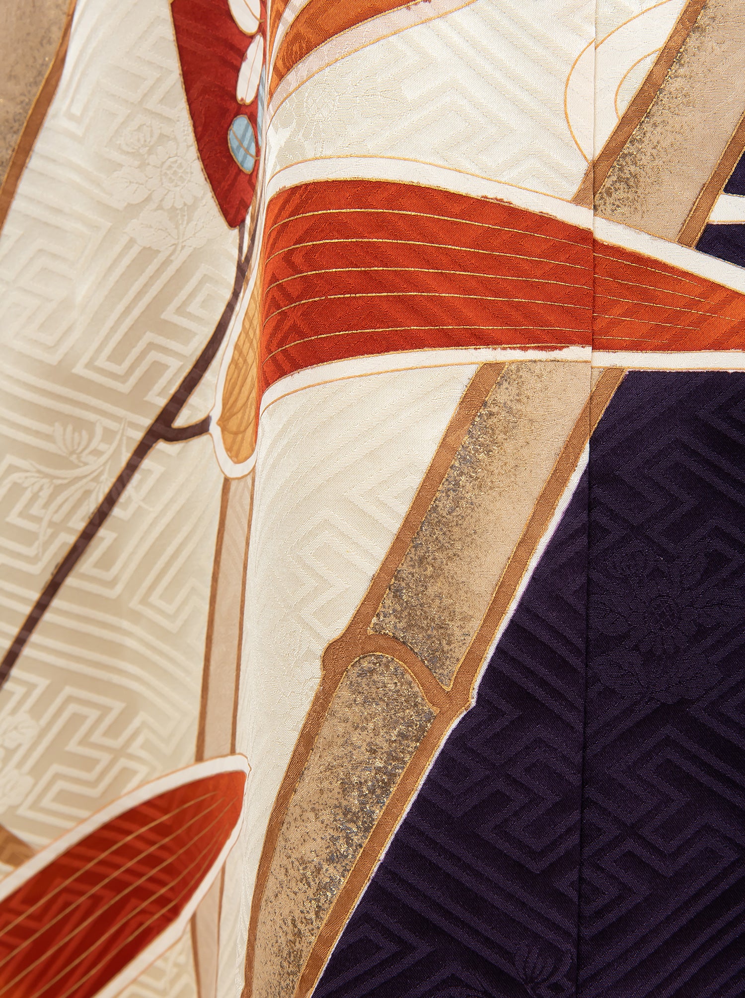 冠婚葬祭の時に第一礼装として着用される「留黒袖」をワンピースドレスにアップサイクルしました。 元来の着物が