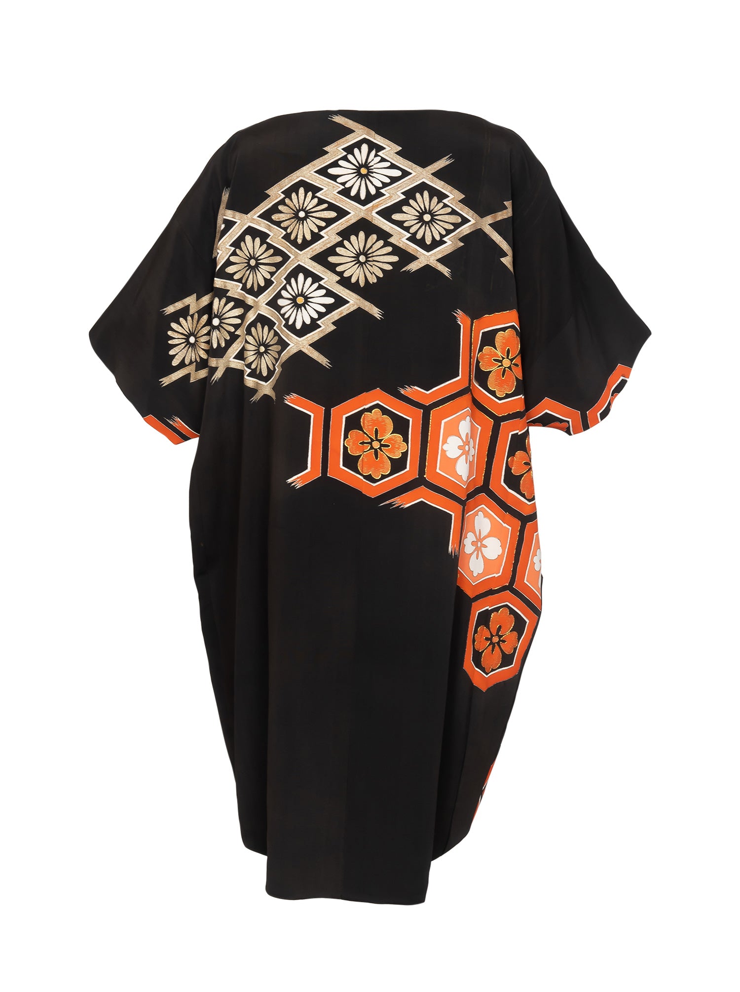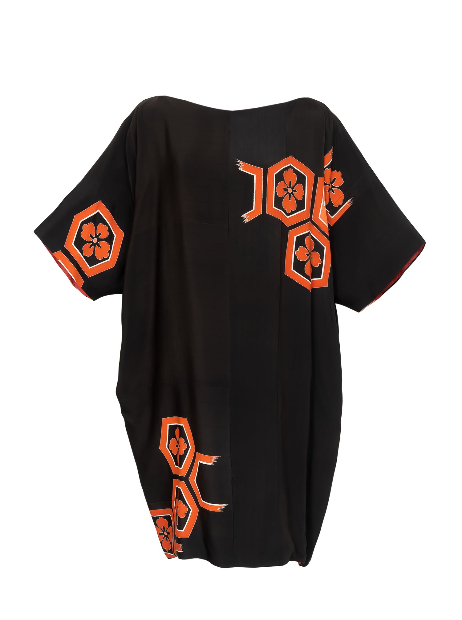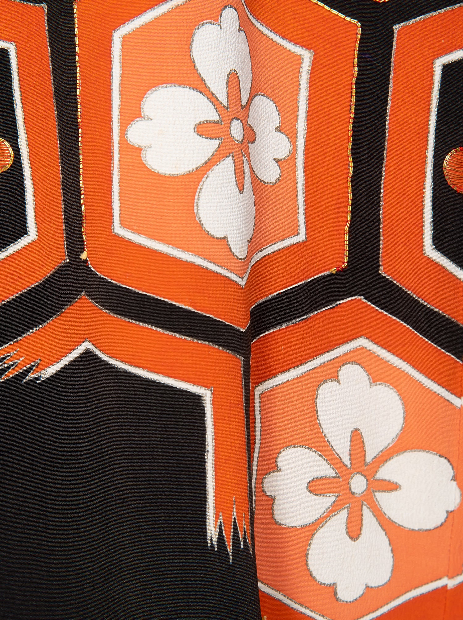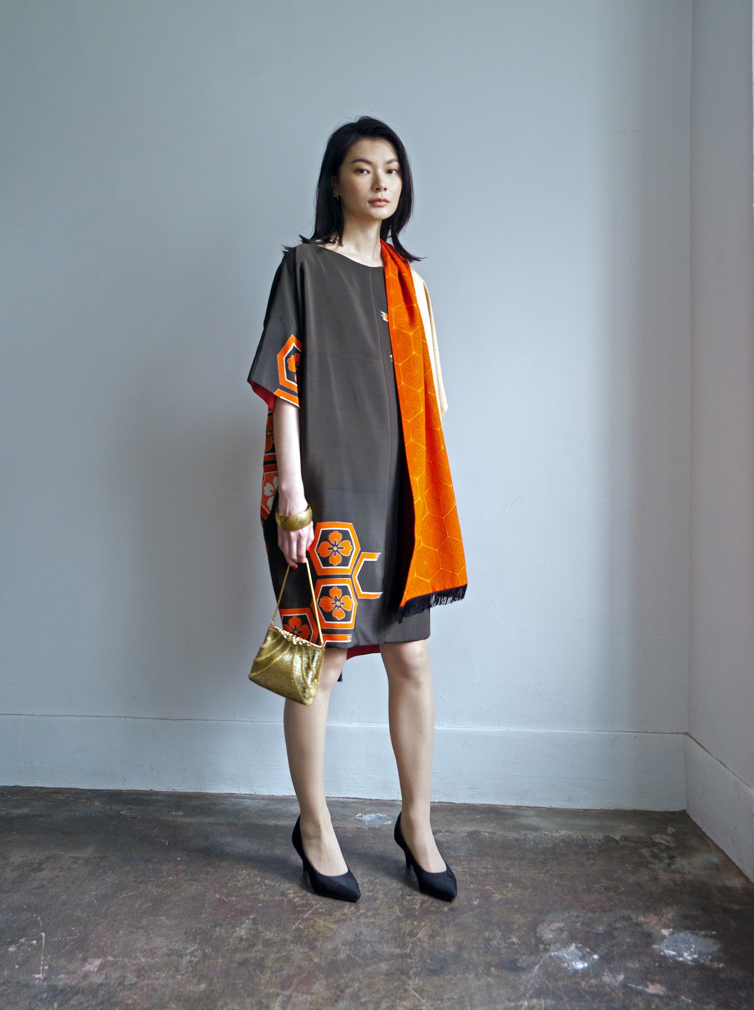 冠婚葬祭の時に第一礼装として着用される「留黒袖」をワンピースドレスにアップサイクルしました。 元来の着物が