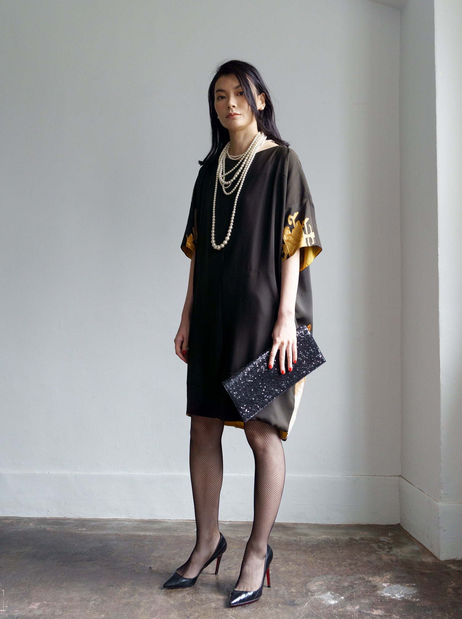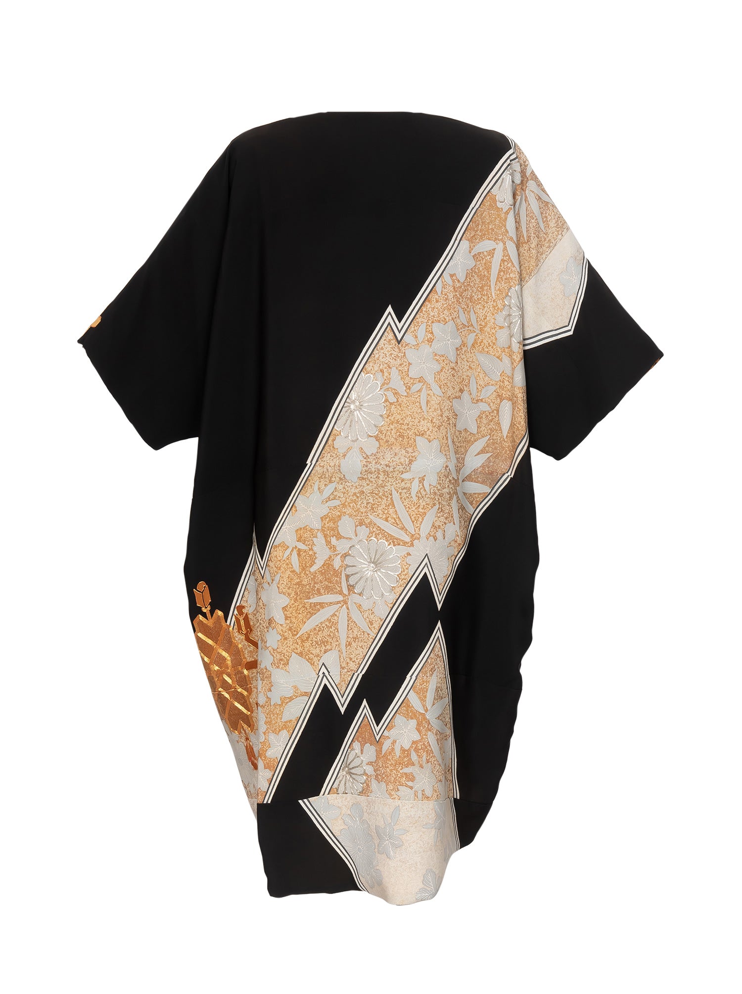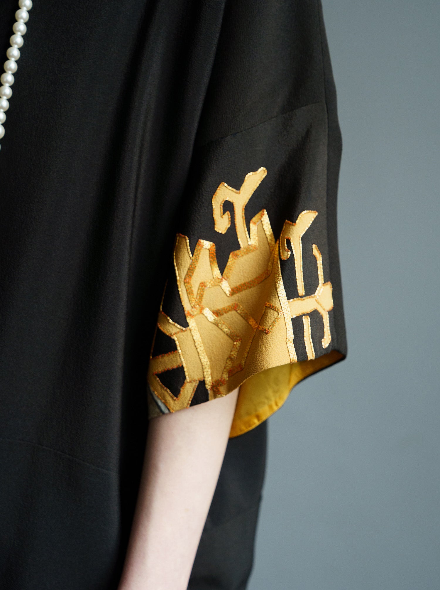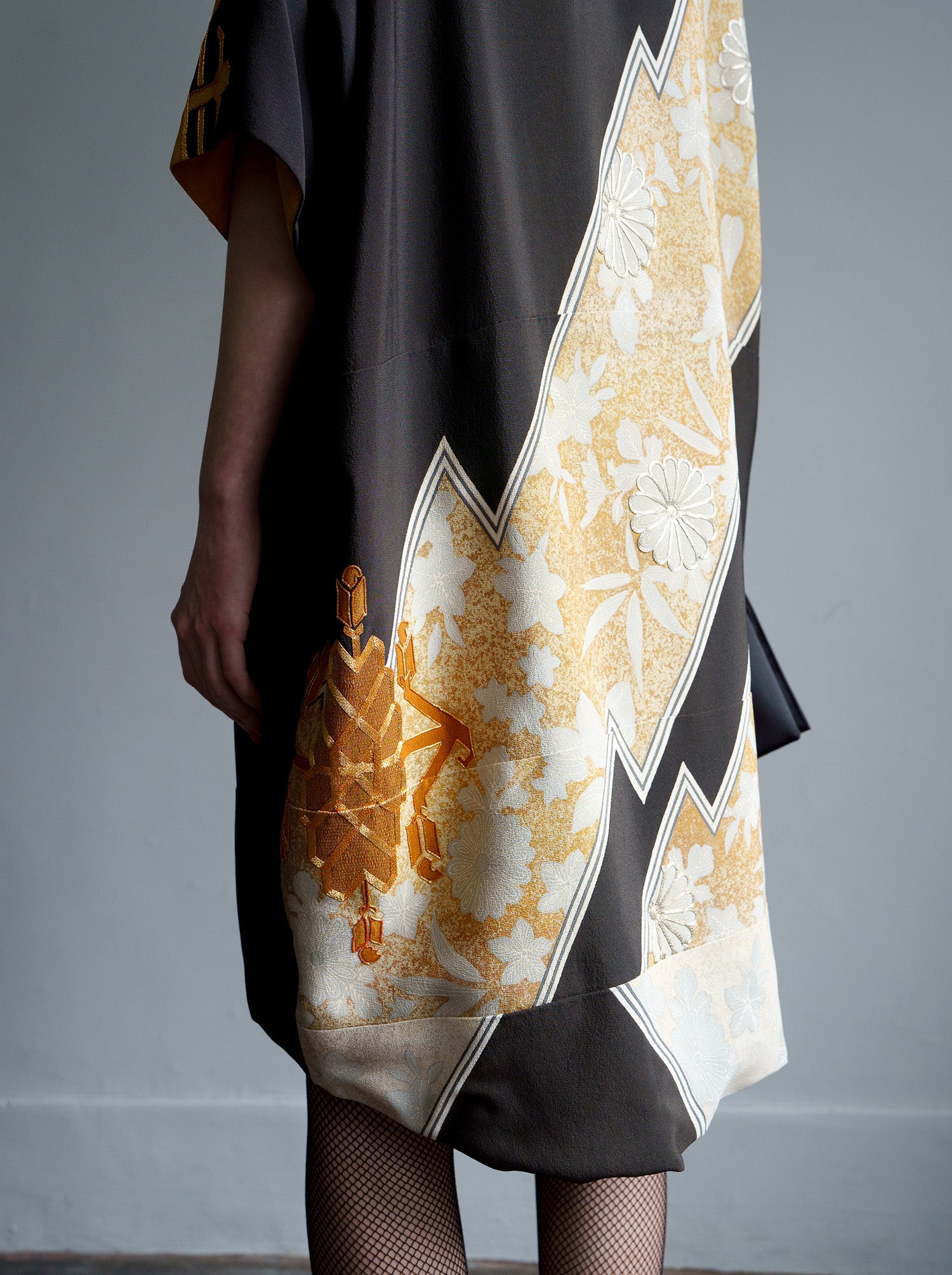 冠婚葬祭の時に第一礼装として着用される「黒留袖」をワンピースドレスにアップサイクルしました。