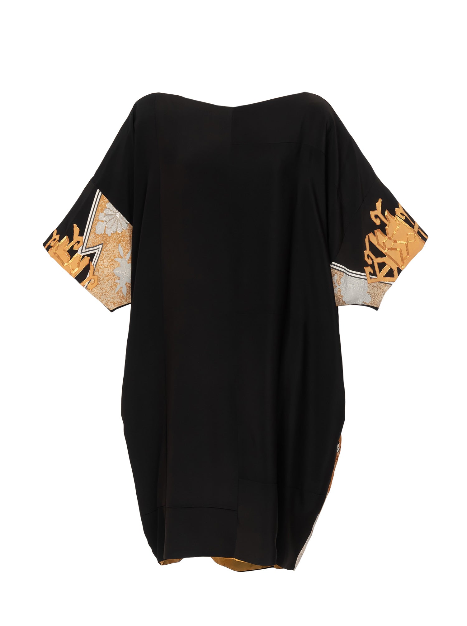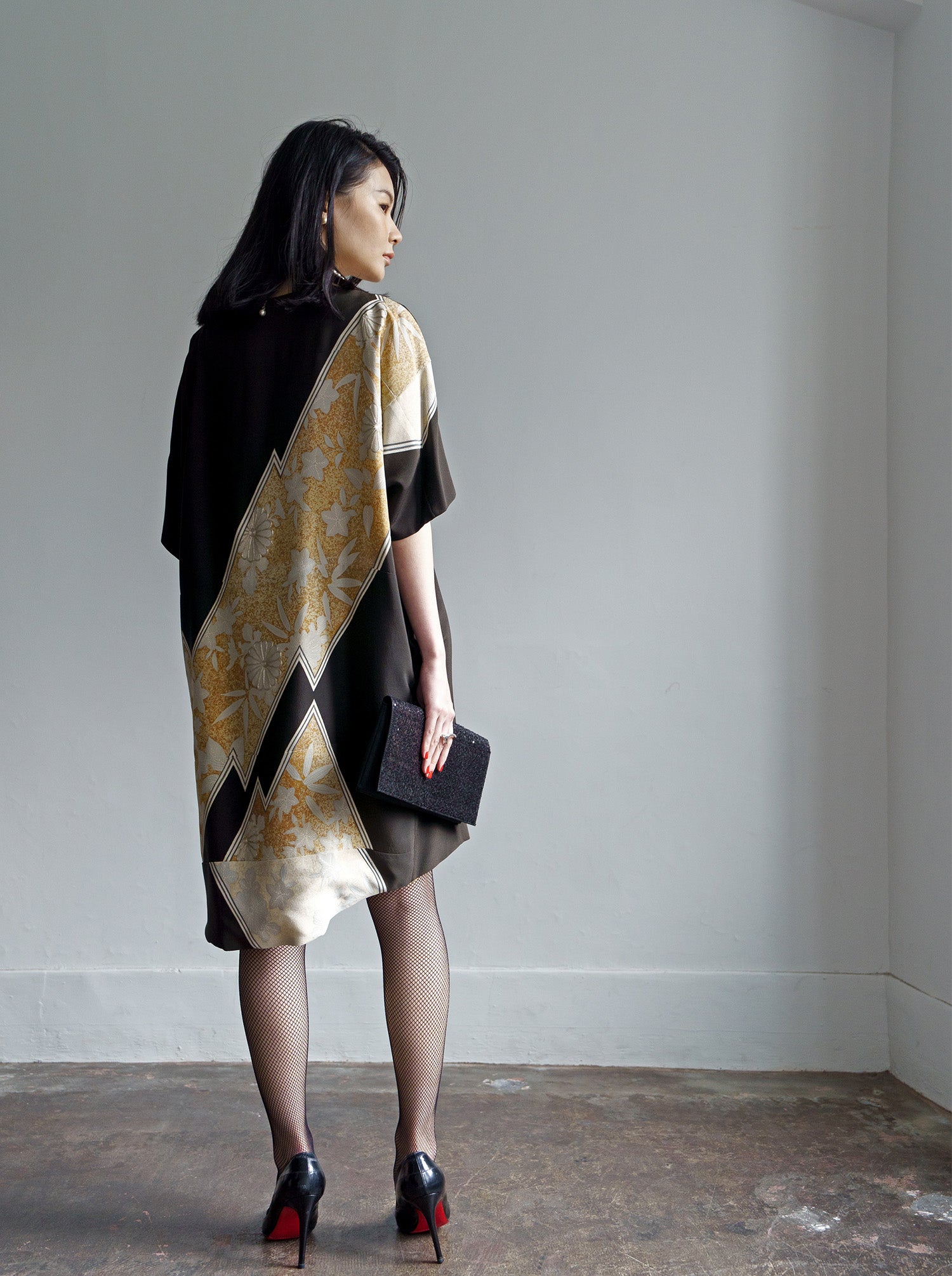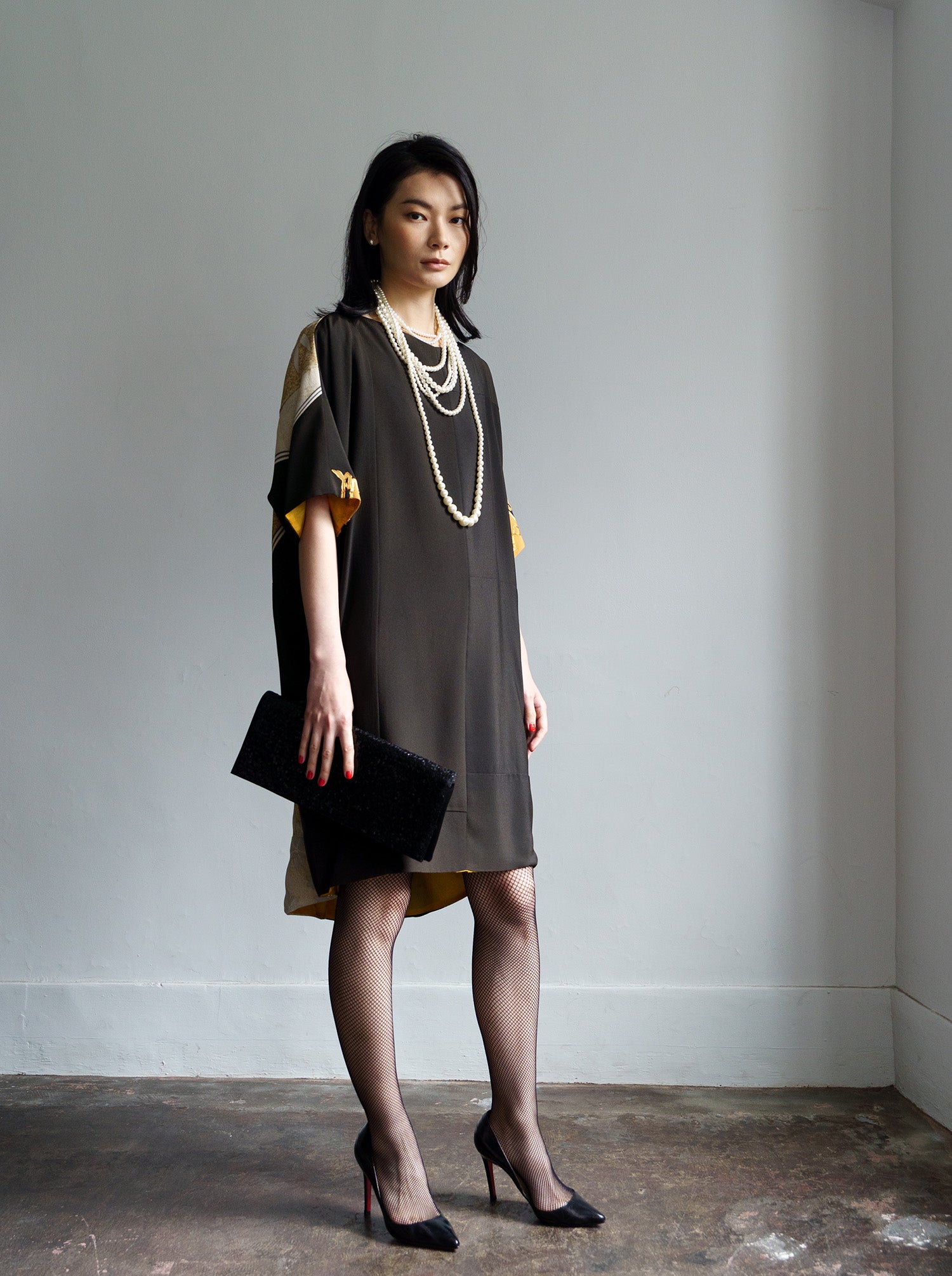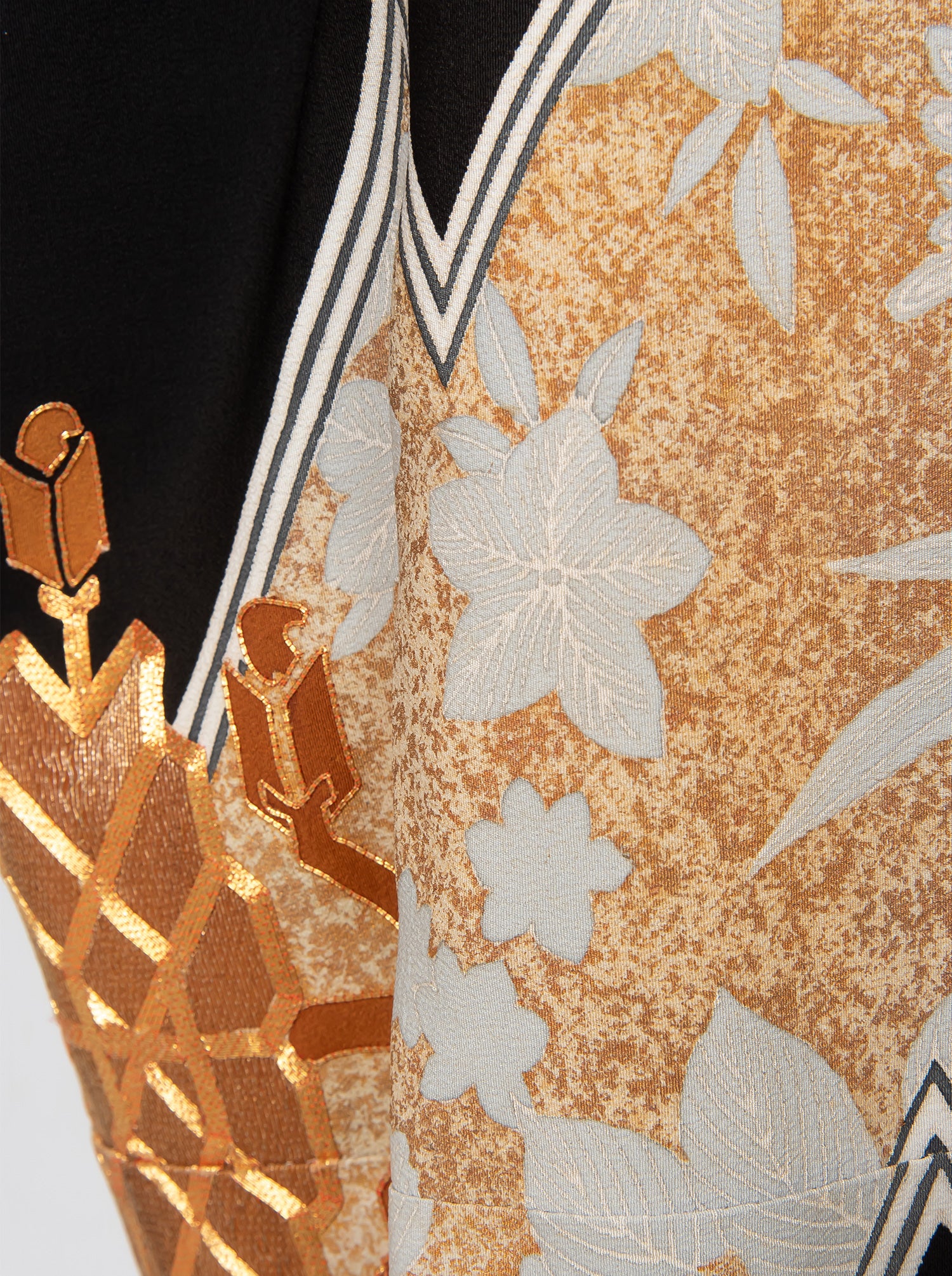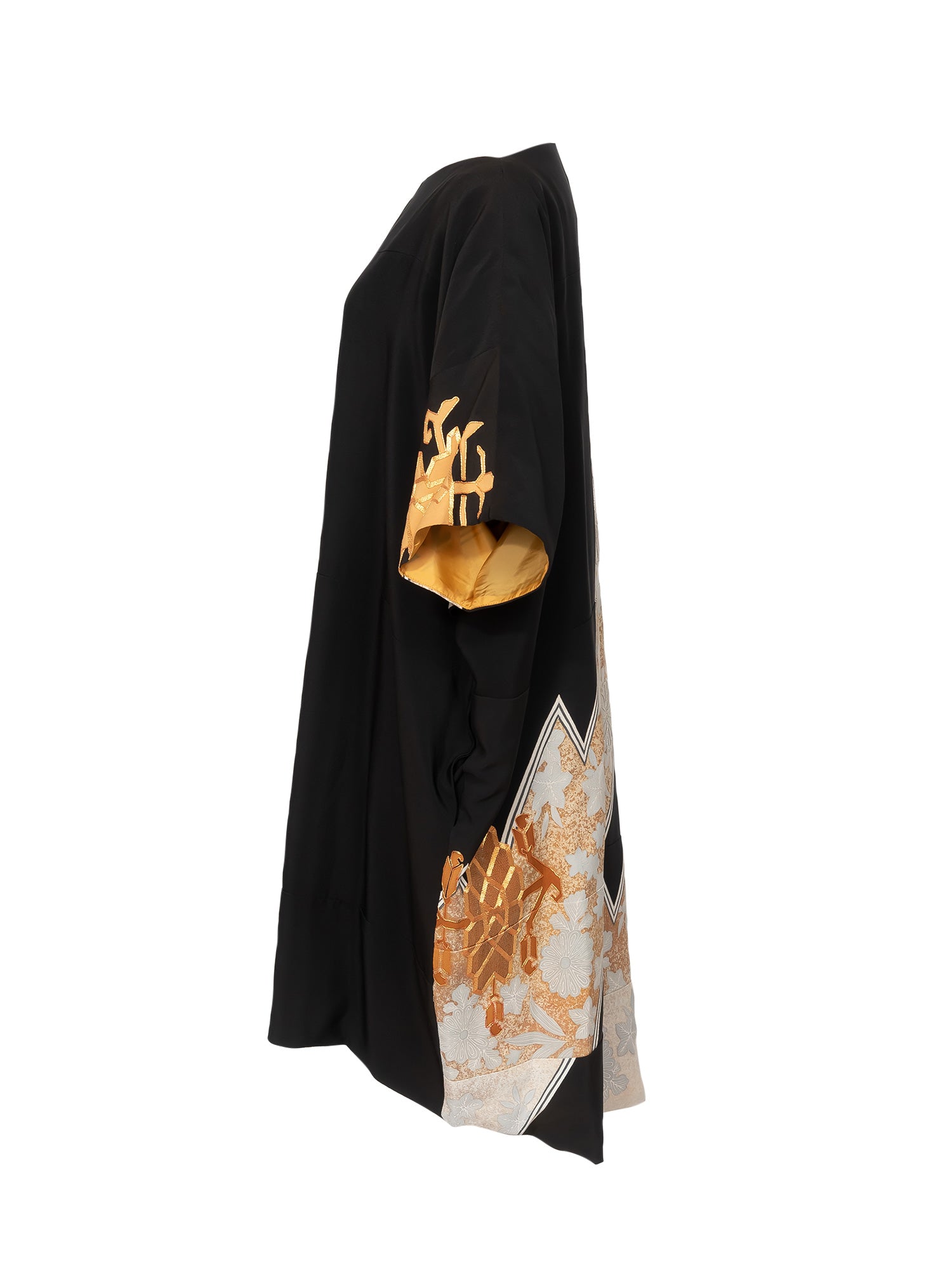冠婚葬祭の時に第一礼装として着用される「黒留袖」をワンピースドレスにアップサイクルしました。