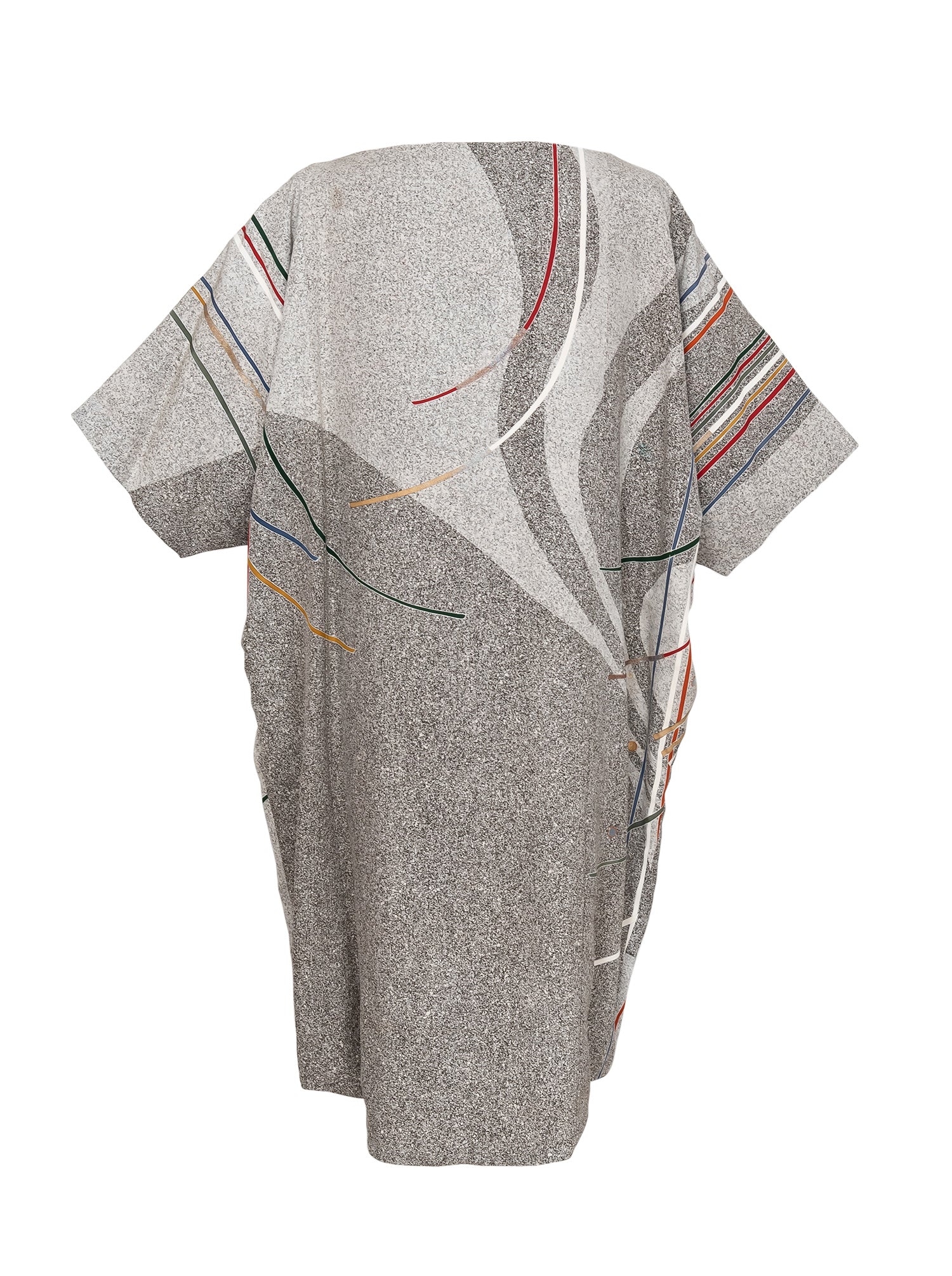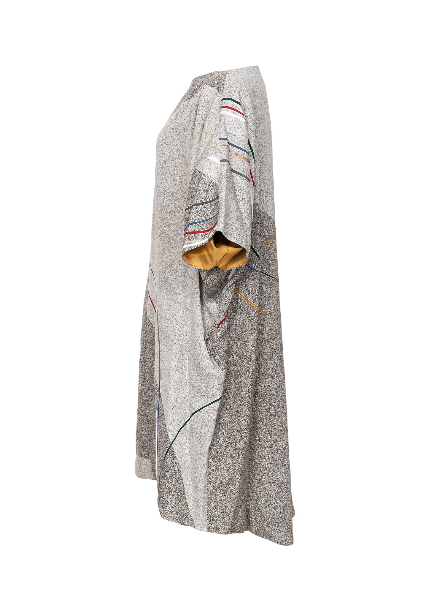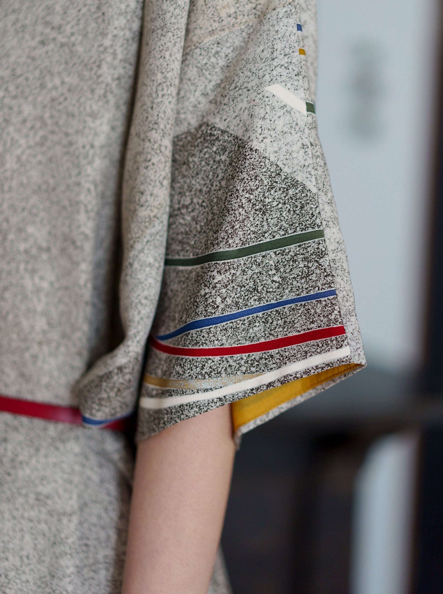 冠婚葬祭の時に第一礼装として着用される「留黒袖」をワンピースドレスにアップサイクルしました。 元来の着物が