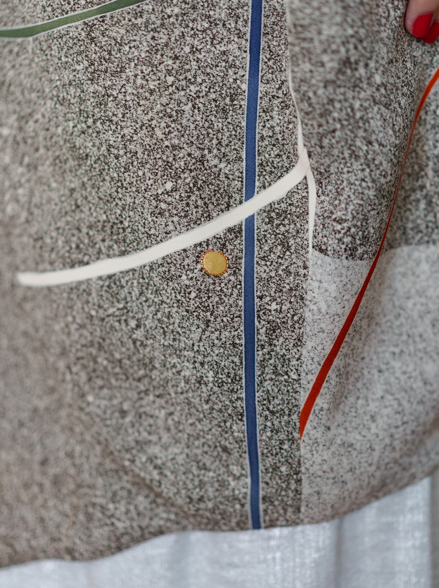 定番でありながらも、着用した時に美しいシルエットが出るよう、こだわりぬいて作られています。 裏地のキュプラとの色合わせも、着物の袷の手間を省いて、1ポイント1点選ばれた美しい組み合わせとなっています。 カジュアルなシーンでも、フォーマルなシーン