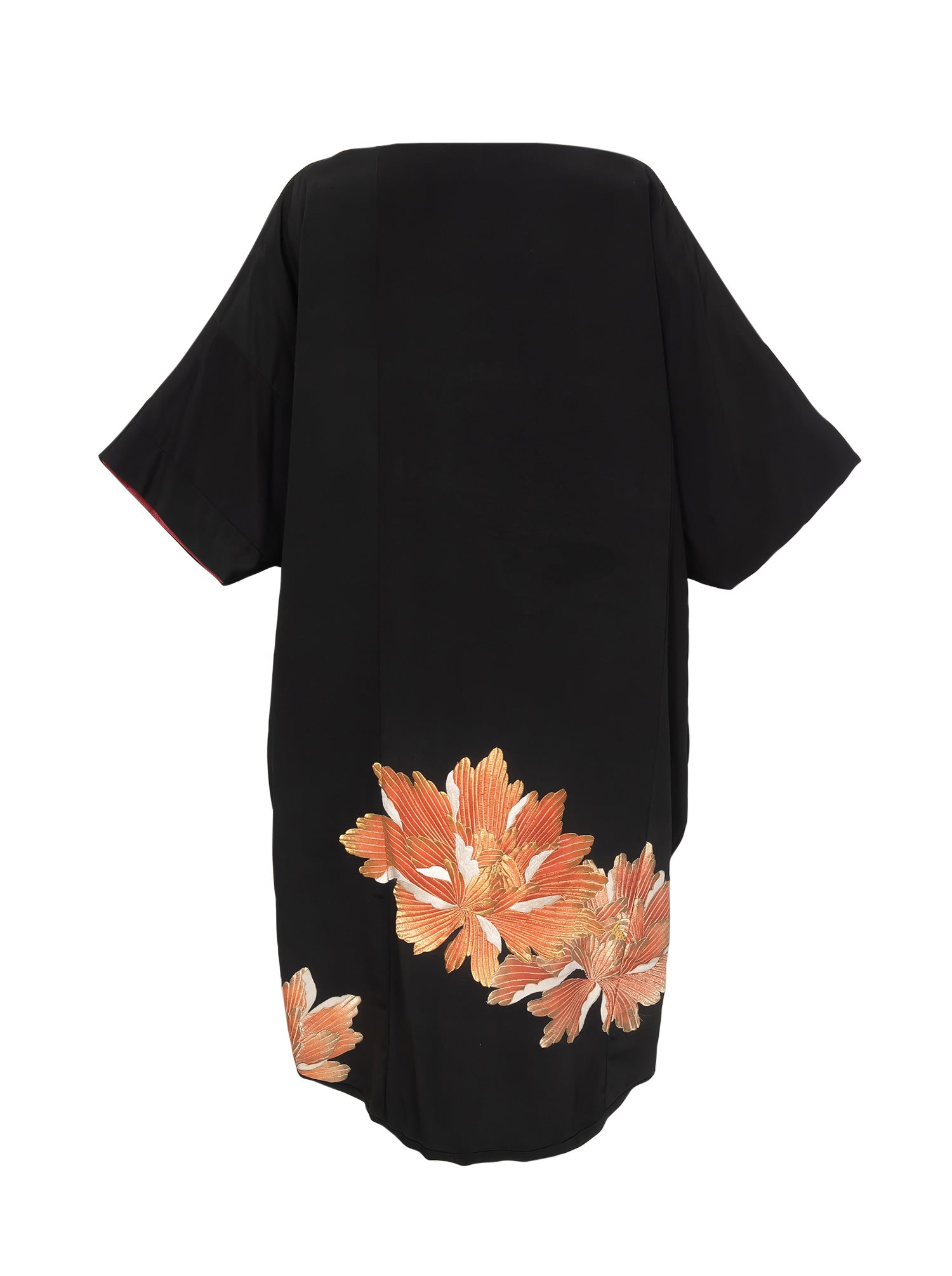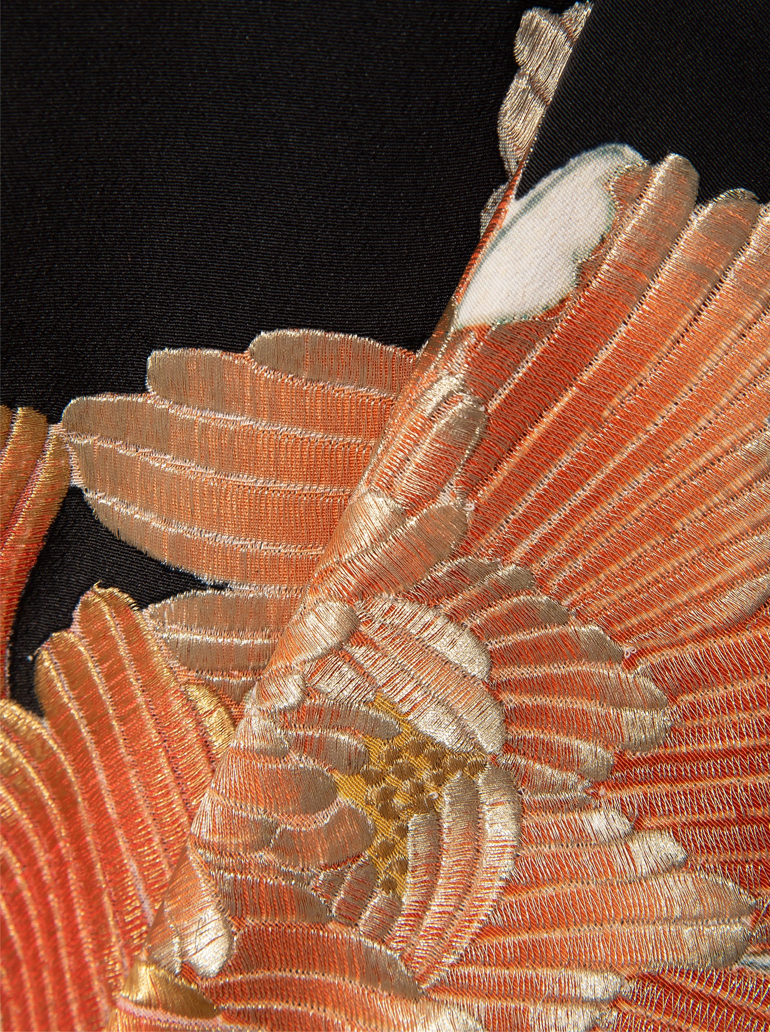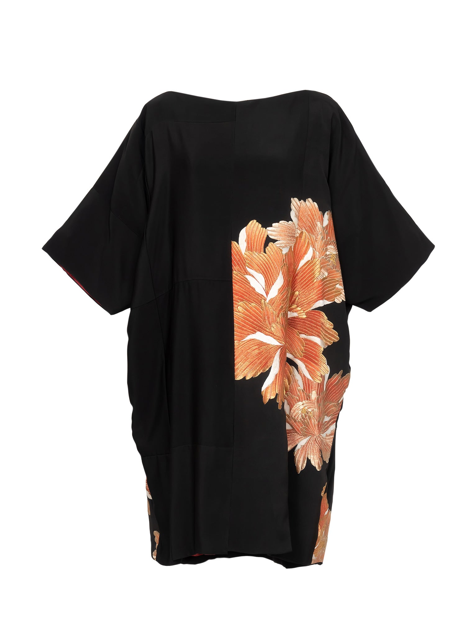 冠婚葬祭の時に第一礼装として着用される「黒留袖」をワンピースドレスにアップサイクルしました。