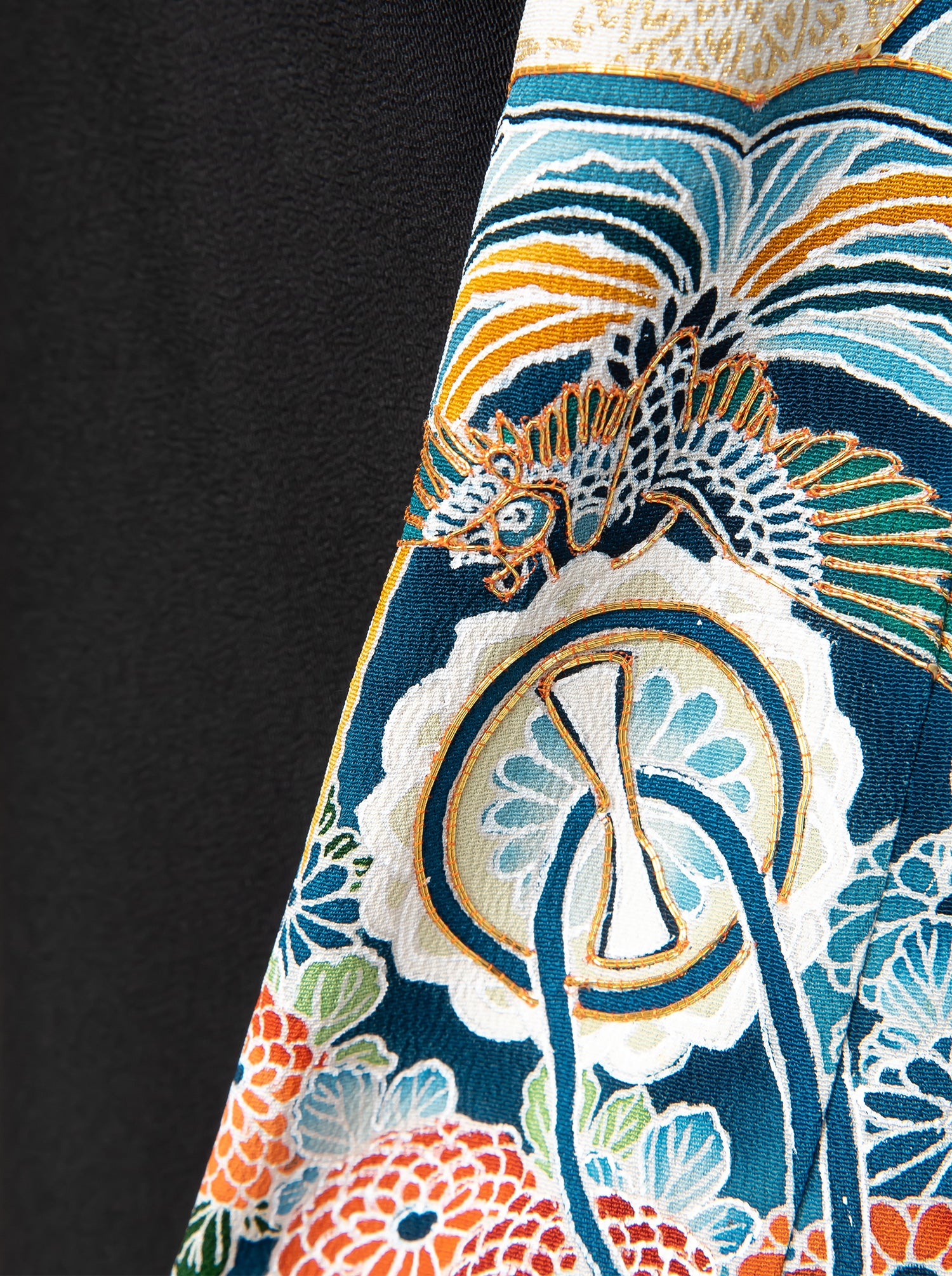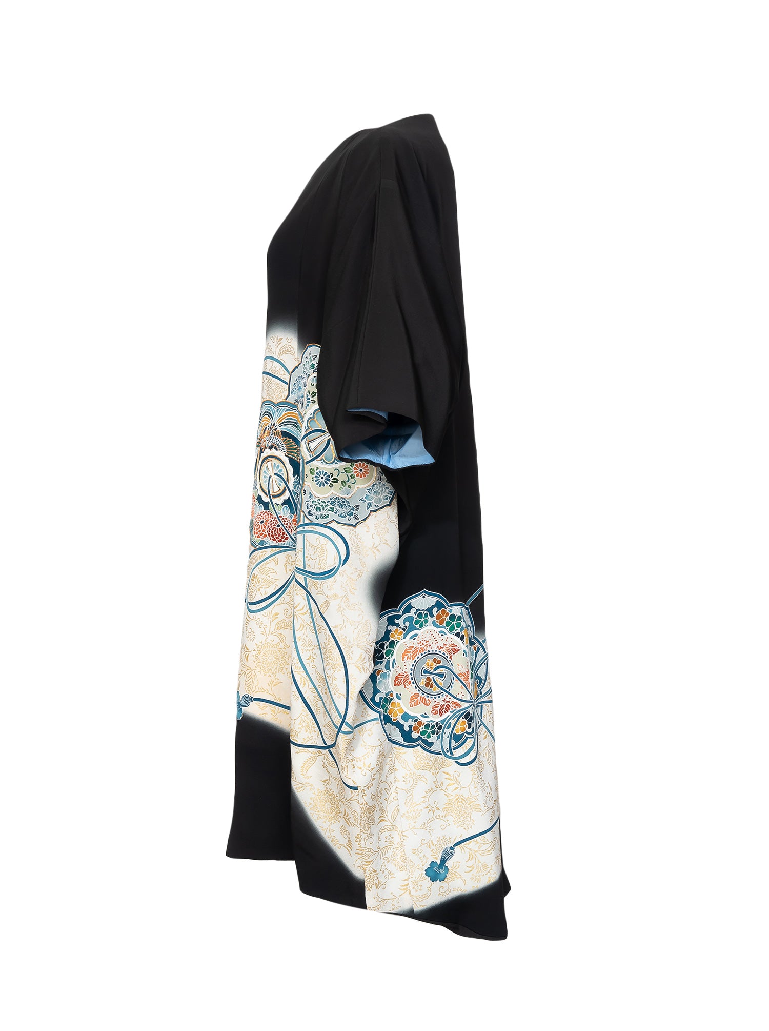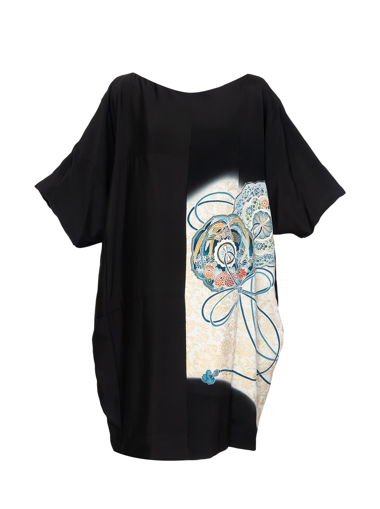 冠婚葬祭の時に第一礼装として着用される「留黒袖」をワンピースドレスにアップサイクルしました。 元来の着物が