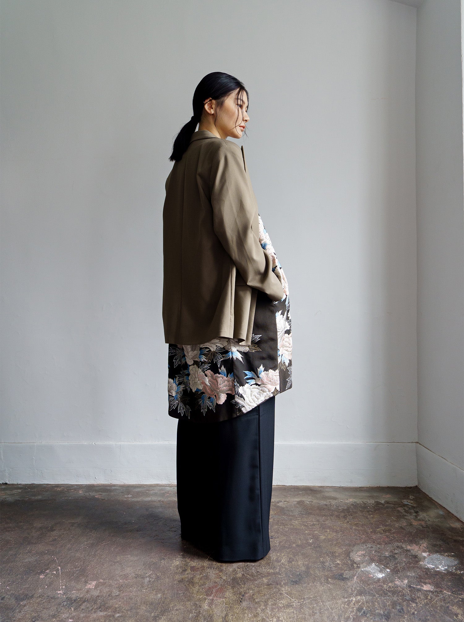 定番でありながらも、着用した時に美しいシルエットが出るよう、こだわりぬいて作られています。 裏地のキュプラとの色合わせも、着物の袷の手間を省いて、1ポイント1点選ばれた美しい組み合わせとなっています。 カジュアルなシーンでも、フォーマルなシーン